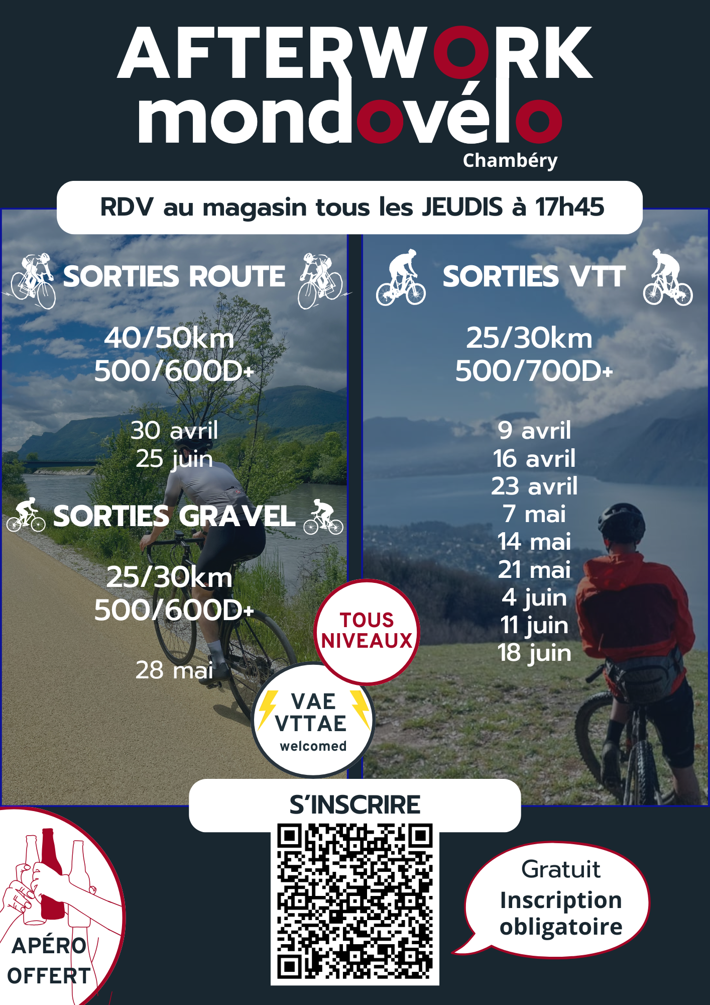 Afterwork VTT, route et Gravel - Saison 2026